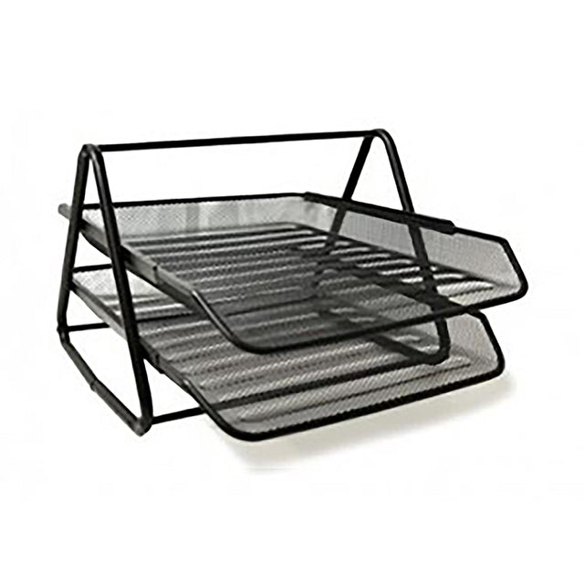 La bandeja en malla doble metálica es la solución ideal para organizar tus documentos y maximizar el espacio en tu escritorio. Fabricada con malla de metal, esta bandeja es robusta, duradera y tiene un diseño moderno que se adapta a cualquier oficina. Sus dos niveles te permiten clasificar y mantener a la mano archivos, carpetas y papeles importantes de manera ordenada. Es la herramienta perfecta para reducir el desorden y optimizar tu productividad.