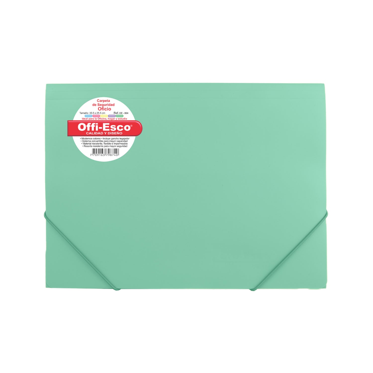 Carpeta de seguridad tamaño carta, elaborada en plástico color pastel resistente. Su diseño tipo sobre con resorte permite almacenar documentos de forma segura, evitando pérdidas o dobleces. Ideal para estudiantes, oficinas y archivos personales.