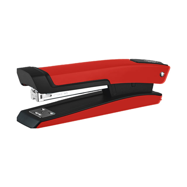 Grapadora metálica grande con diseño ergonómico, ideal para uso intensivo en oficina, hogar o industria. Ofrece gran resistencia, suavidad al uso y funcionalidad adicional como sacaganchos incorporado. Su correa de tracción metálica facilita una recarga rápida y eficiente.