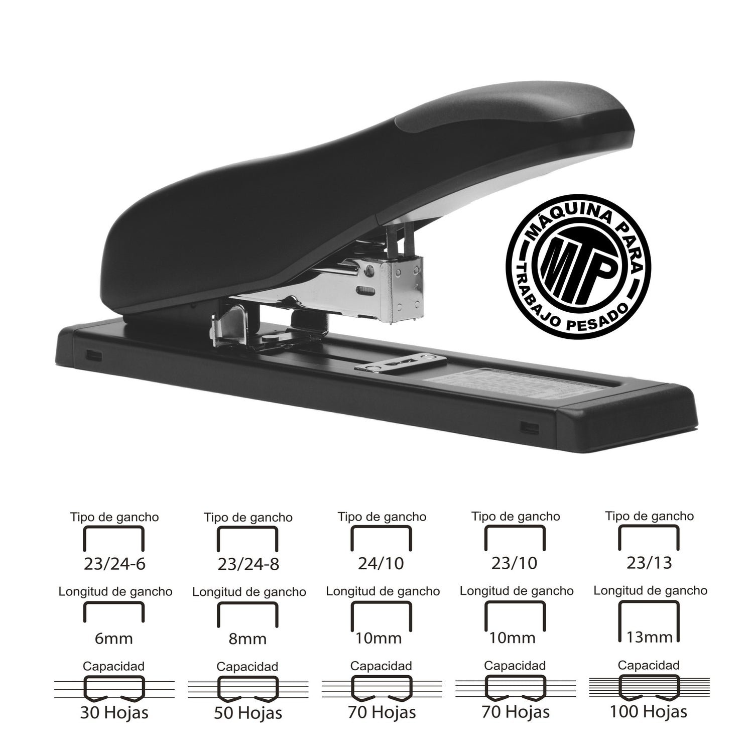 Grapadora industrial de gran potencia y precisión, ideal para centros de copiado, oficinas técnicas y entornos de trabajo con alto volumen de papel. Su diseño robusto permite grapar desde 2 hasta 140 hojas, con compatibilidad para múltiples tamaños de grapas.