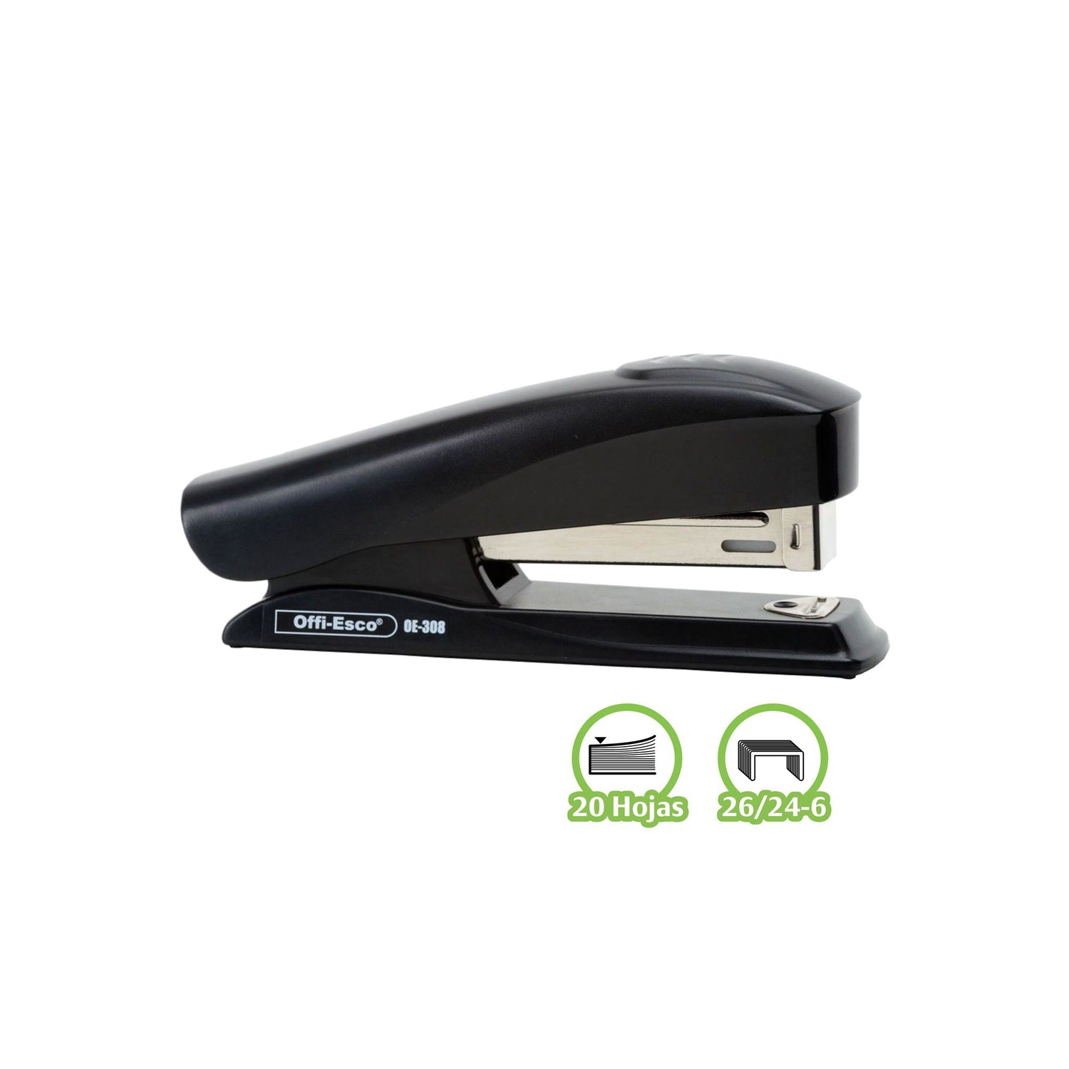 Grapadora mediana con cuerpo plástico y mecanismo interno metálico, ideal para uso escolar, en casa u oficina. Su estructura robusta permite grapar con facilidad hasta 20 hojas estándar. Compatible con grapas 26/24-6, brinda un rendimiento confiable y duradero en cada uso.