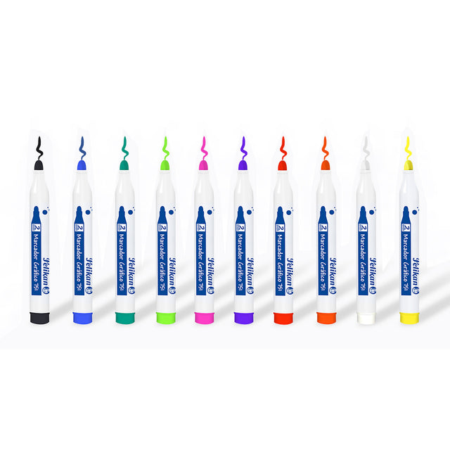 Marcador Gráfico 751 Pelikan multiusos para manualidades, uso escolar y profesional. Su tinta pigmentada a base de agua es permanente en superficies porosas como tela, madera, cerámica y papel.