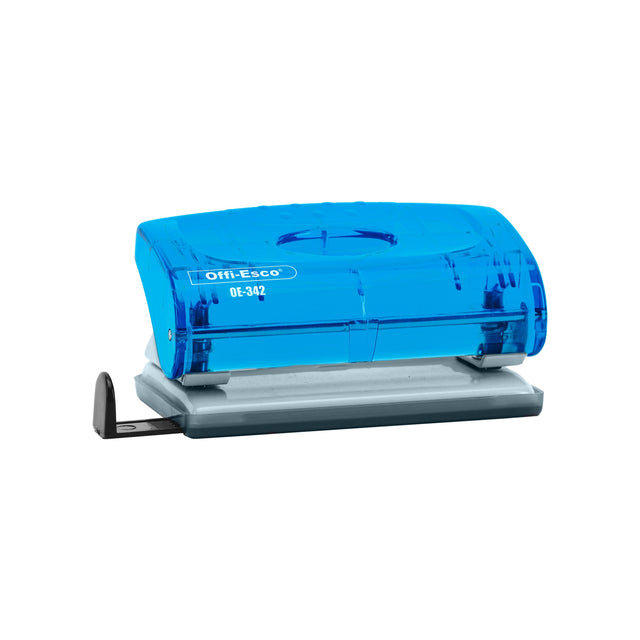 Perforadora de 2 huecos con cuerpo plástico y componentes metálicos, en colores translúcidos vibrantes. Ideal para uso escolar y de oficina. Perfora hasta 10 hojas estándar con facilidad y precisión.