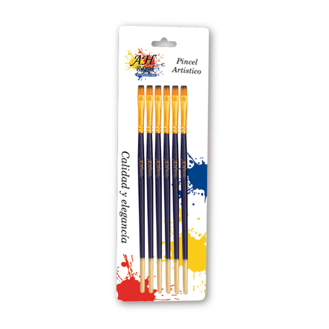 El pincel artístico plano #4 es un básico indispensable en el estuche de cualquier artista. Su tamaño intermedio y su forma de cerdas planas lo convierten en la herramienta perfecta para un amplio abanico de técnicas. Es ideal para cubrir áreas medianas, aplicar fondos de color y crear líneas definidas y trazos rectos. Su versatilidad lo hace perfecto para trabajar con pintura acrílica, óleo y acuarela, ofreciendo un balance entre control y cobertura en cada proyecto.