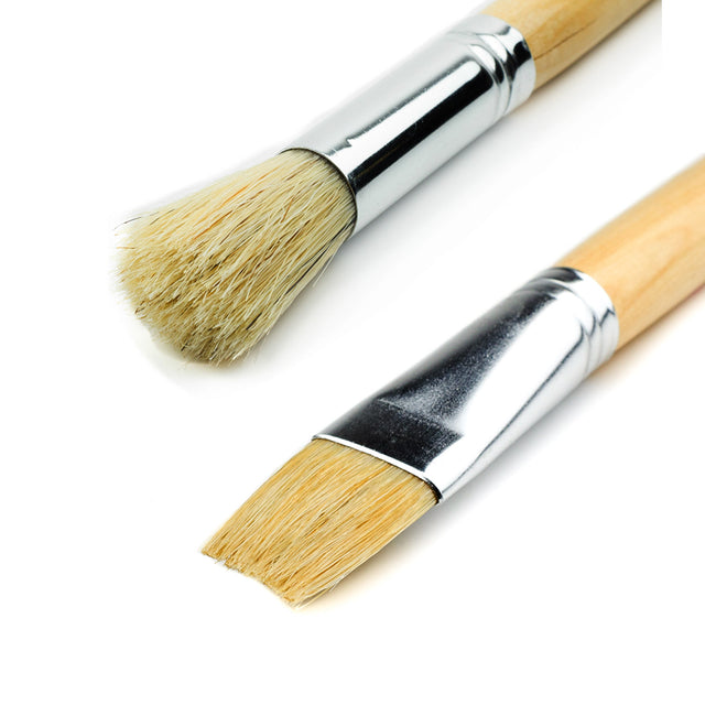 El pincel de cerda #12 es una herramienta esencial para los artistas que buscan textura y durabilidad en sus obras. Sus cerdas naturales son firmes y resistentes, lo que lo hace ideal para trabajar con pinturas espesas como el óleo y el acrílico. Su tamaño grande es perfecto para cubrir áreas extensas y para crear efectos de relieve y trazos expresivos en fondos o secciones principales de una pintura.