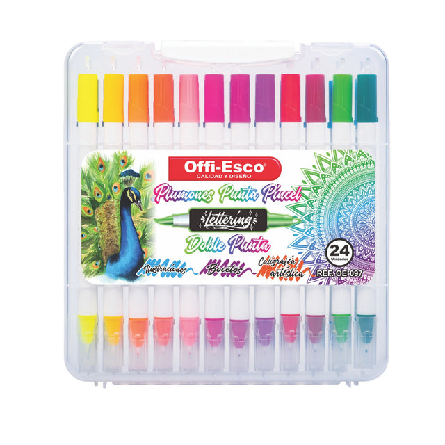 Plumones Doble Punta Pincel 24 Unidades OE-097