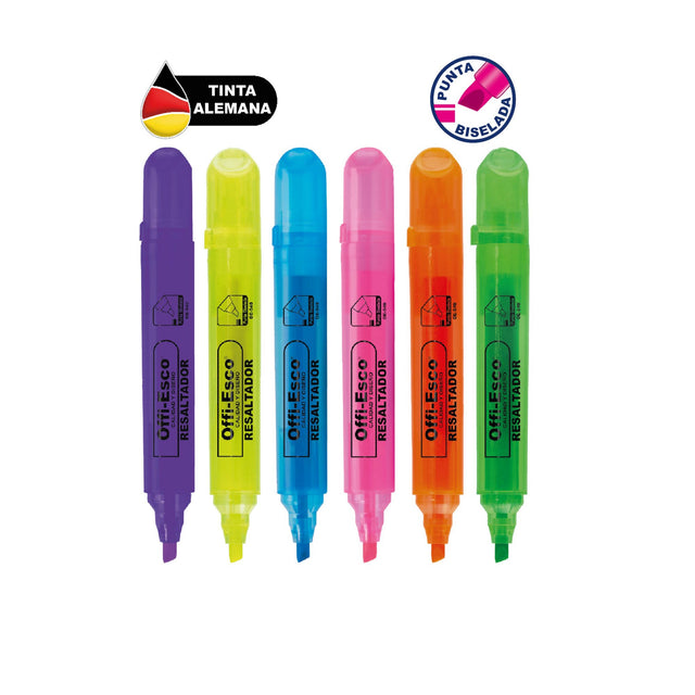 Resaltador grande con tinta alemana de alta calidad y punta biselada, ideal para trazos precisos y duraderos. Disponible en 🎨 colores neón: morado, amarillo, azul, fucsia, naranja y verde. Perfecto para uso escolar, universitario o de oficina.