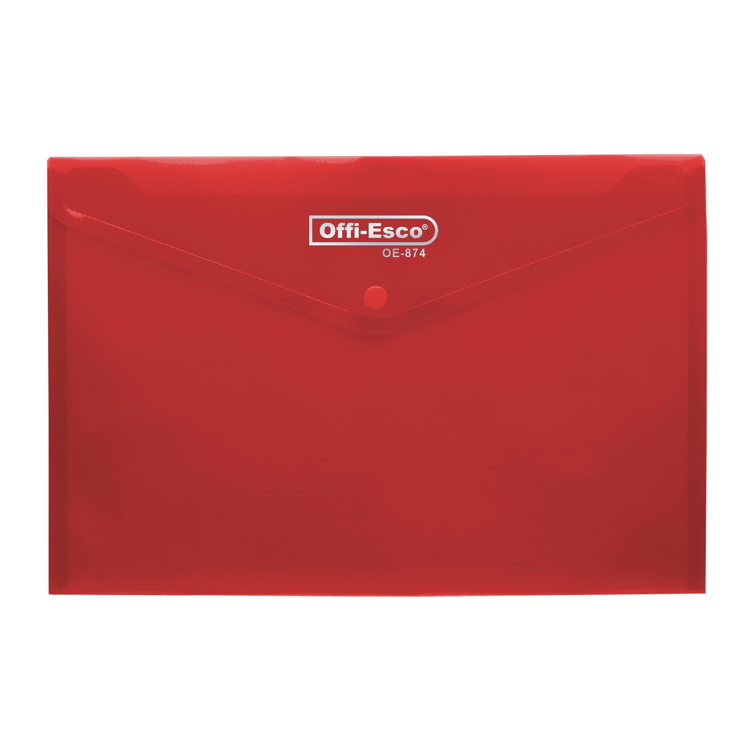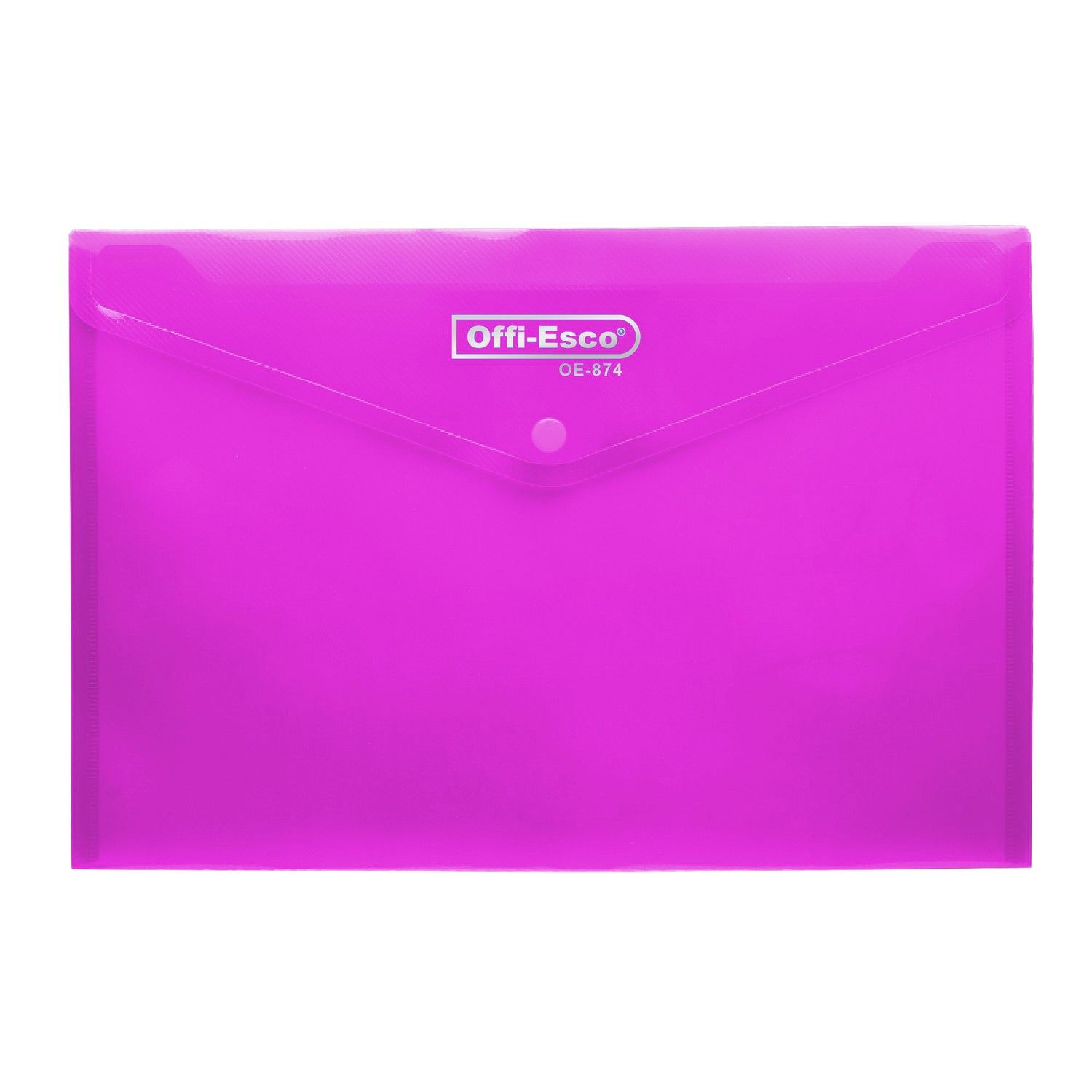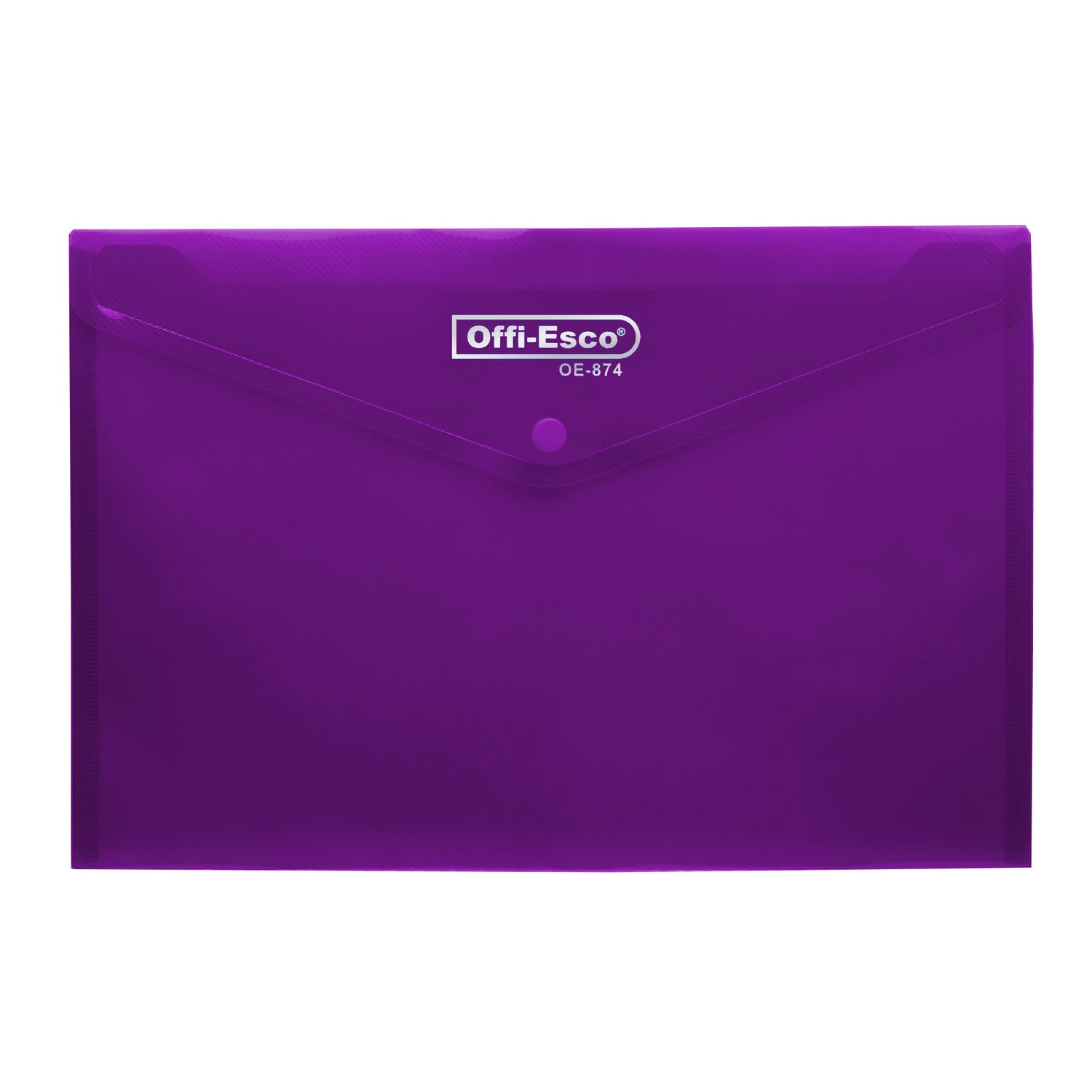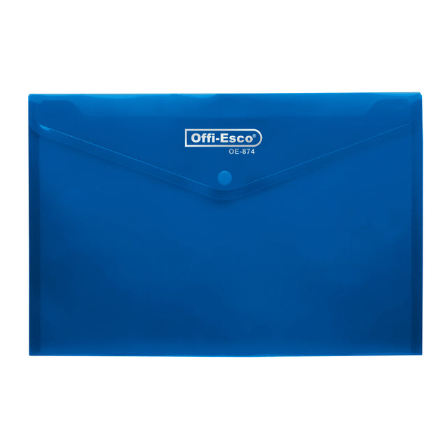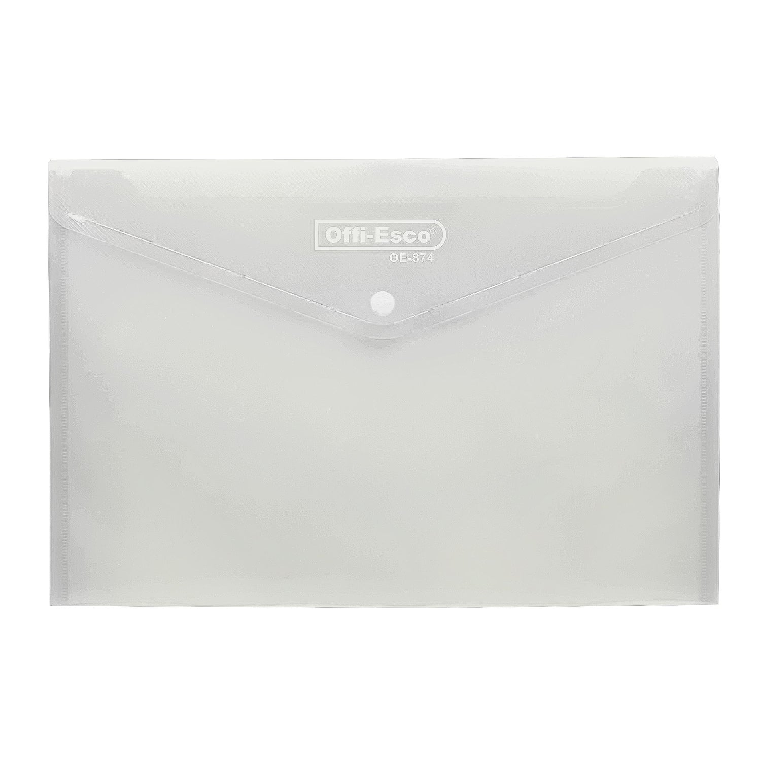 Sobre plástico horizontal con broche tipo botón, ideal para almacenar y proteger documentos tamaño oficio. Fabricado en polipropileno resistente, lavable y reutilizable.