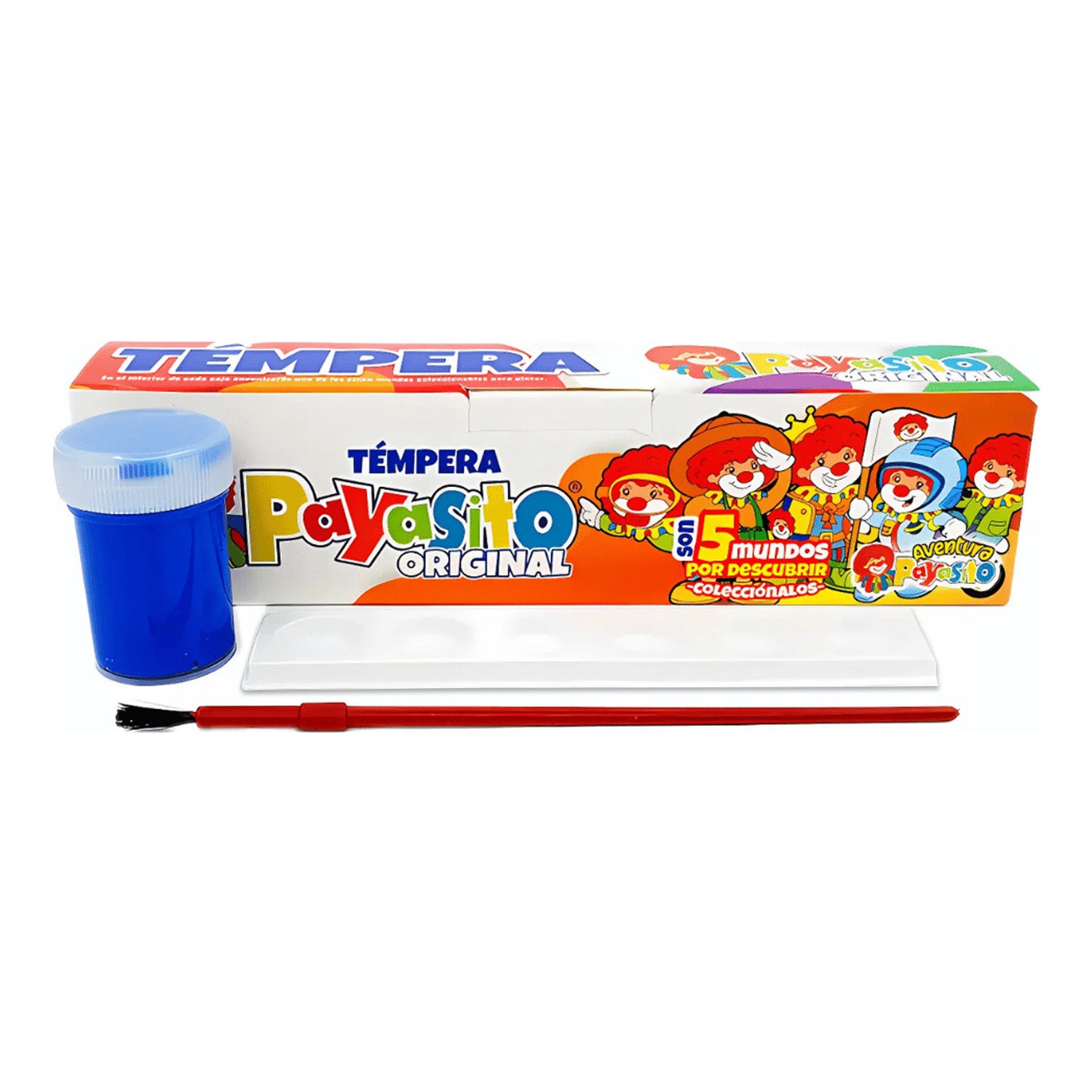 Dale vida a los proyectos de tus pequeños artistas con este set de témpera Payasito®. El estuche incluye 6 vibrantes colores esenciales: amarillo, verde, rojo, negro, blanco y azul, lo que permite un sinfín de mezclas para crear cualquier tonalidad.