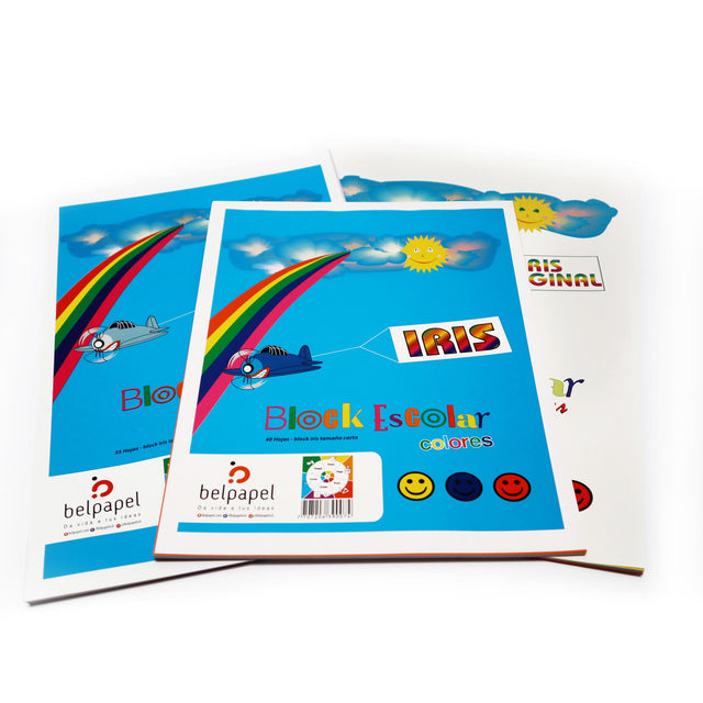 Block de papel Iris de 60 g, en colores vivos 🎨, ideal para manualidades, proyectos escolares, tarjetería y decoraciones creativas. Su peso ligero facilita cortes, pliegues y pegados precisos, siendo perfecto para niños, estudiantes y creadores.