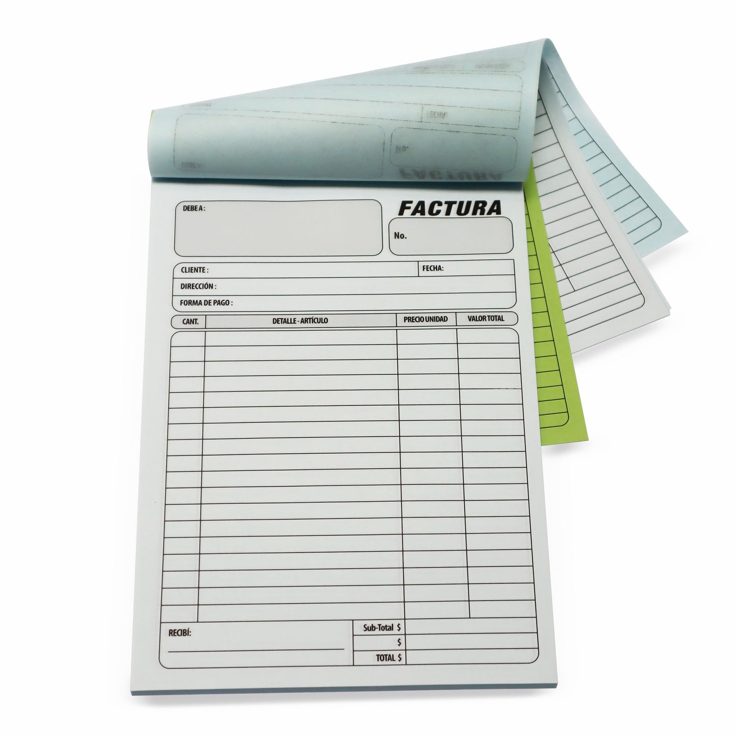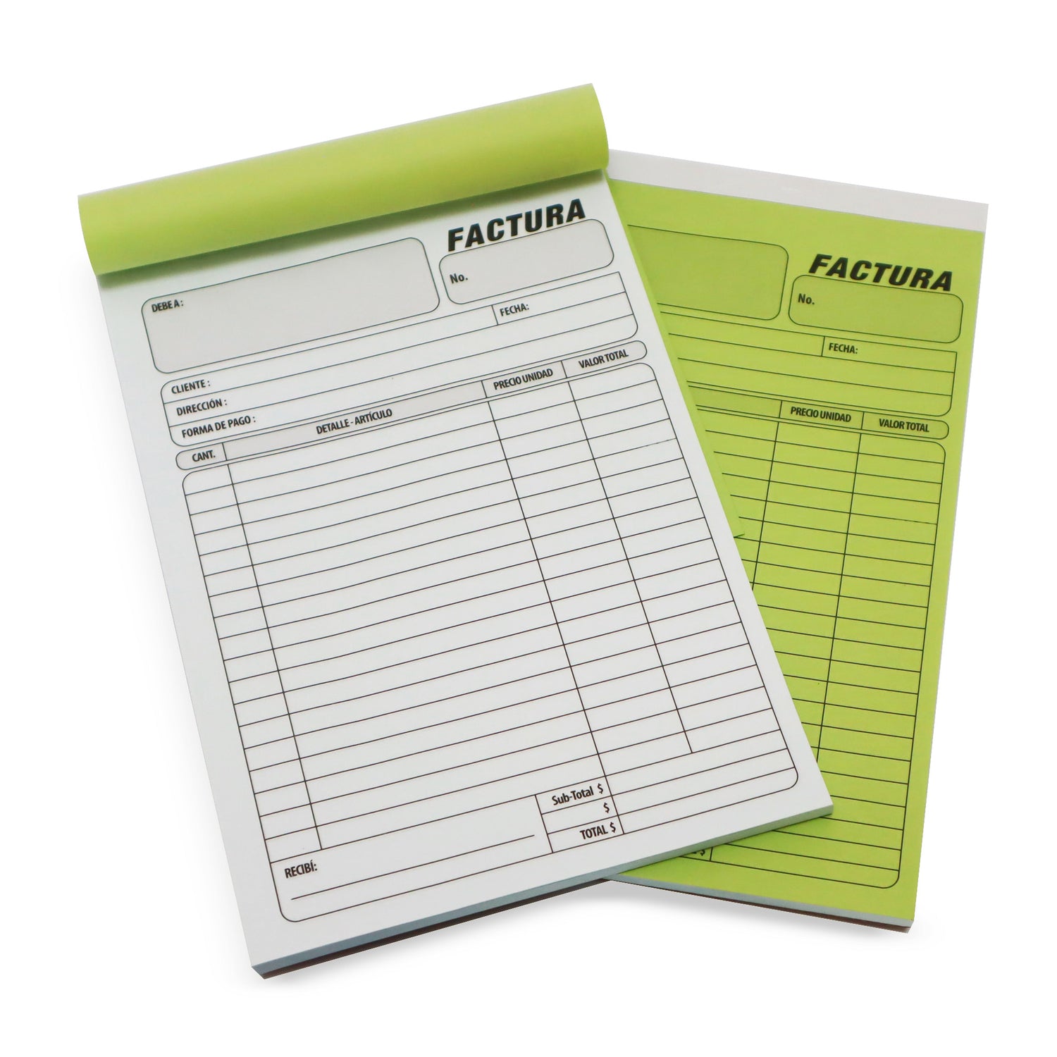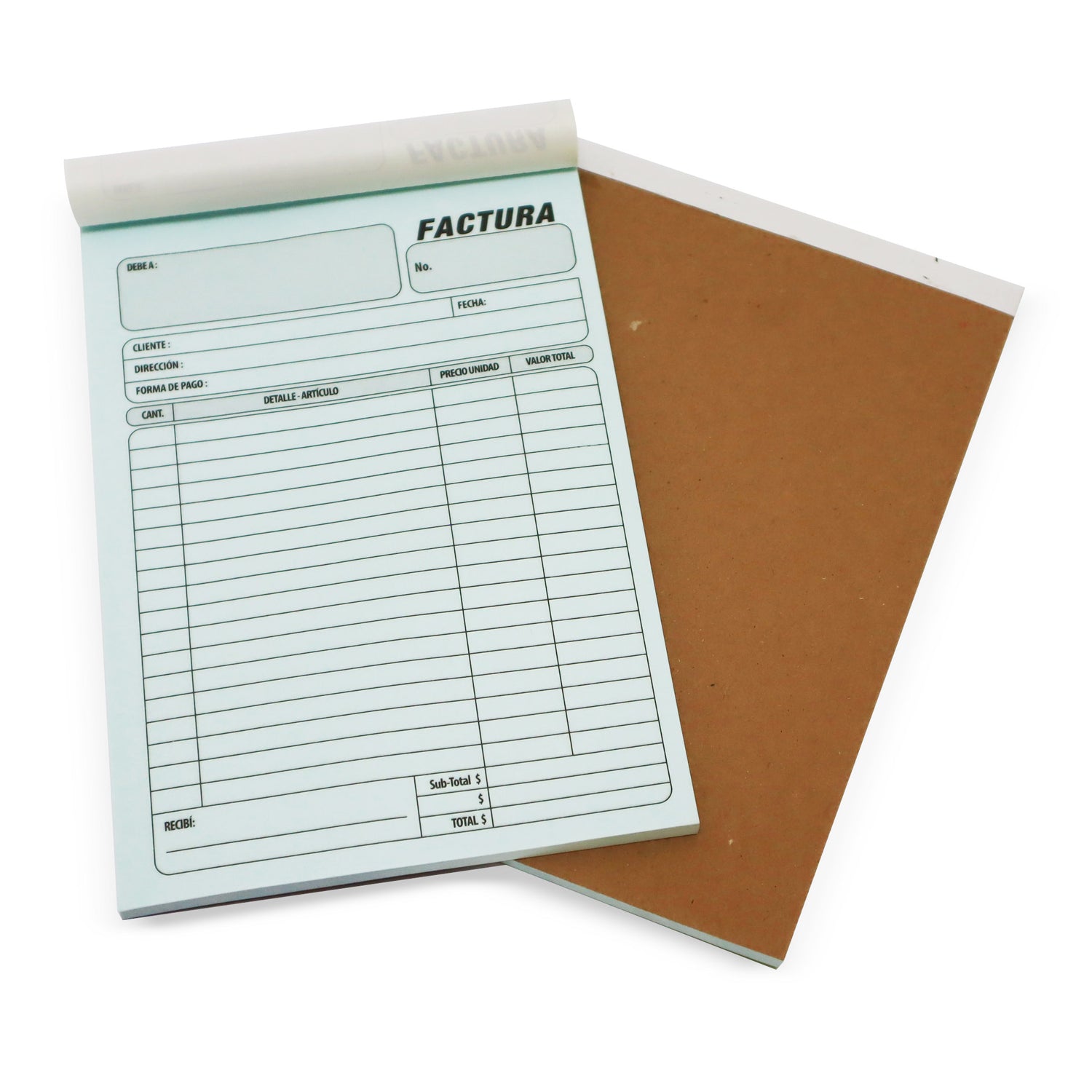 Facturas con original en papel bond 60 g y copia en papel manifold 60 g, ideales para documentar operaciones comerciales en diferentes formatos.