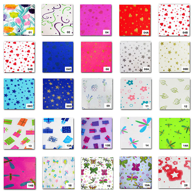 El papel seda estampado es la combinación perfecta de suavidad y diseño, ideal para dar un toque de personalidad a cualquier proyecto. Su material delicado y ligero viene decorado con patrones y diseños que lo hacen único. Es el complemento perfecto para envolver regalos, manualidades y para crear decoraciones de fiesta que sigan una temática específica. Añade un nivel de detalle y sofisticación que demuestra cuidado en cada presentación.